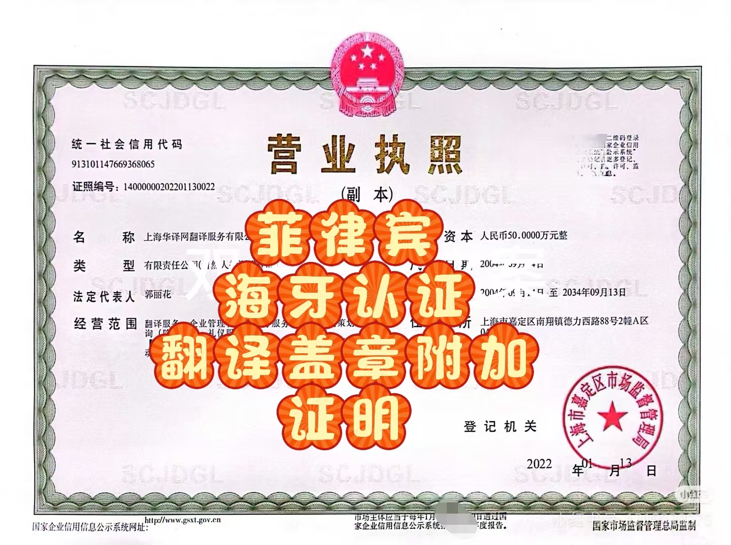 菲律宾海牙认证中菲文件翻译盖章附加证明