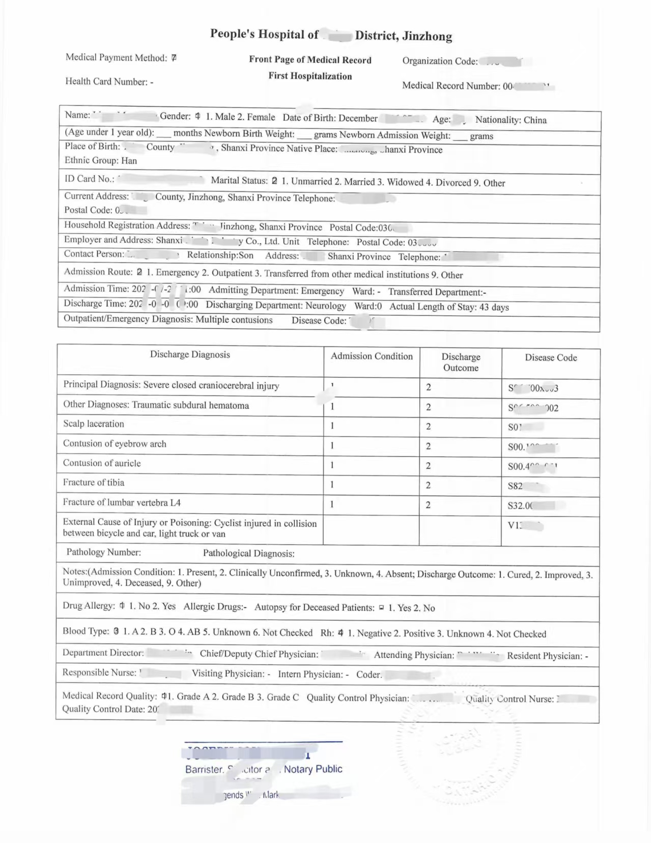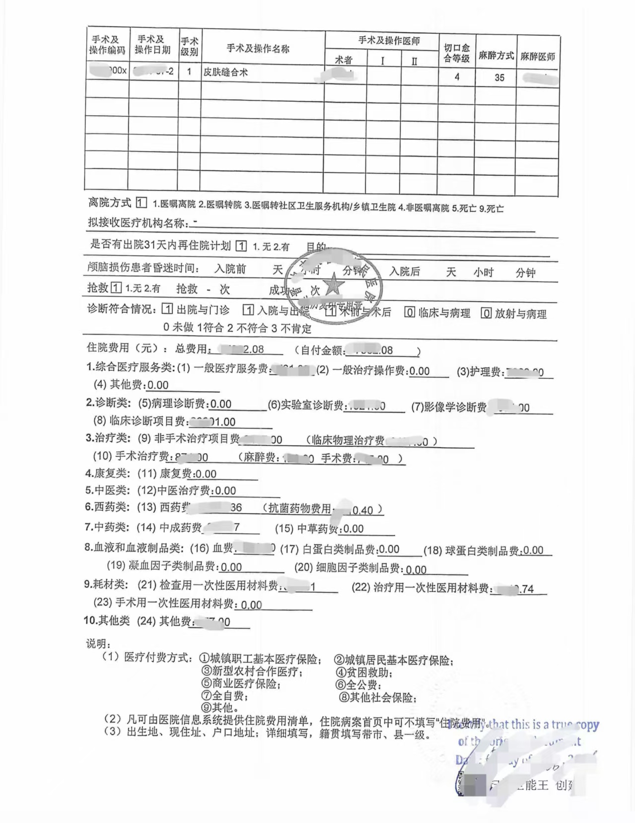 申请人提供的是中国医院出具的完整住院病历、病案首页及费用明细,文件内容包括: