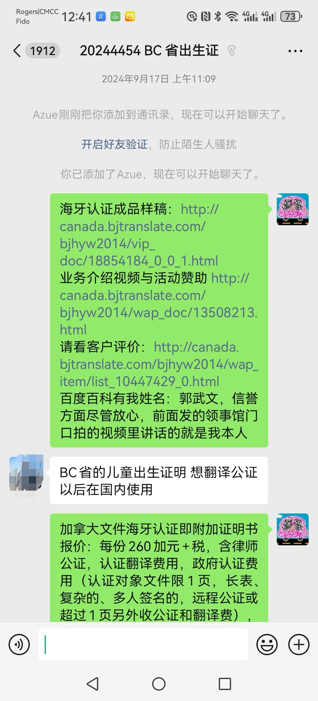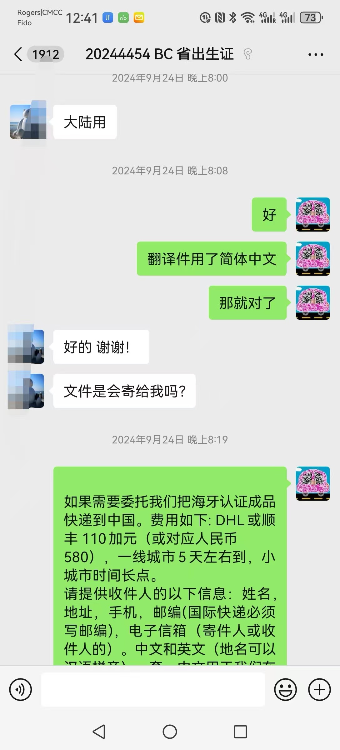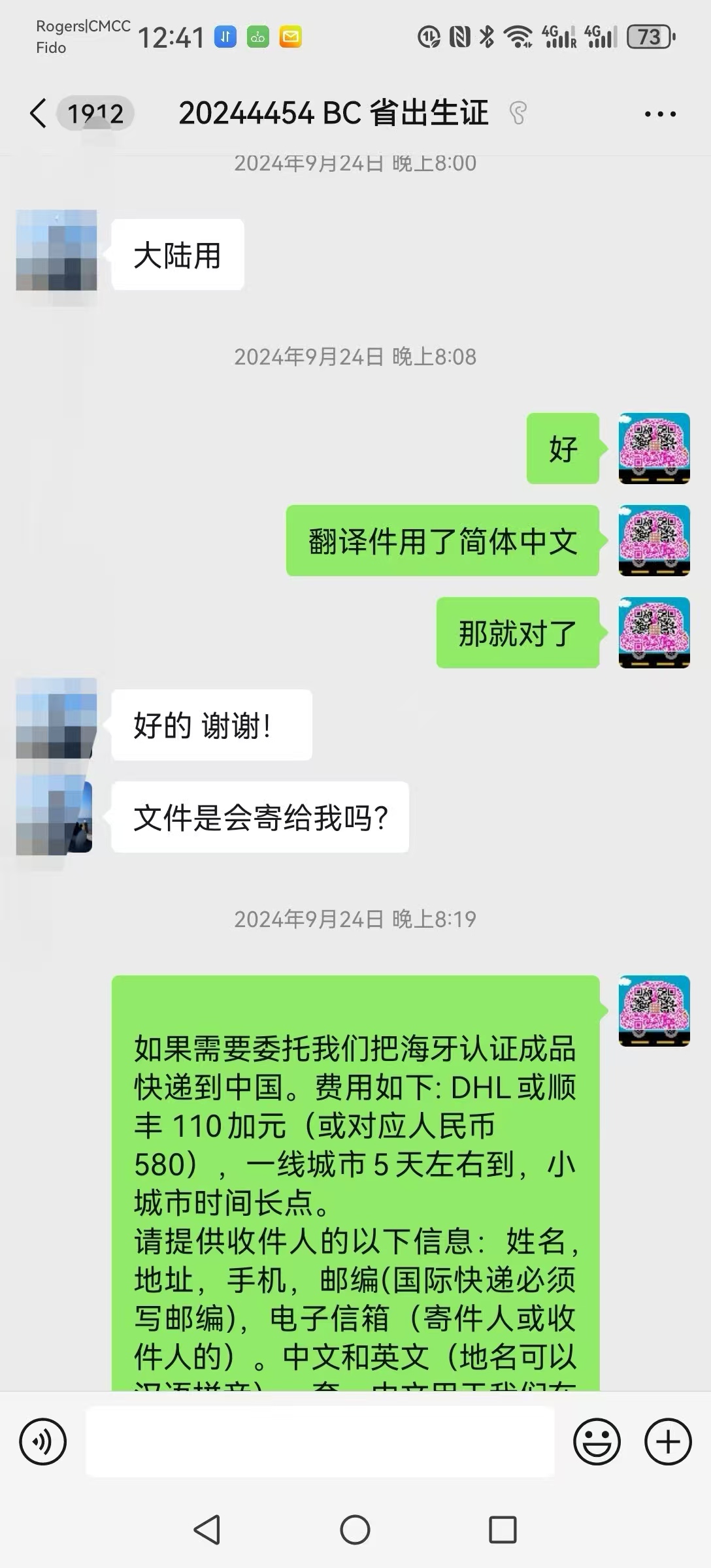 文件于2024年9月在安省完成海牙认证,成品随后寄回国内使用。