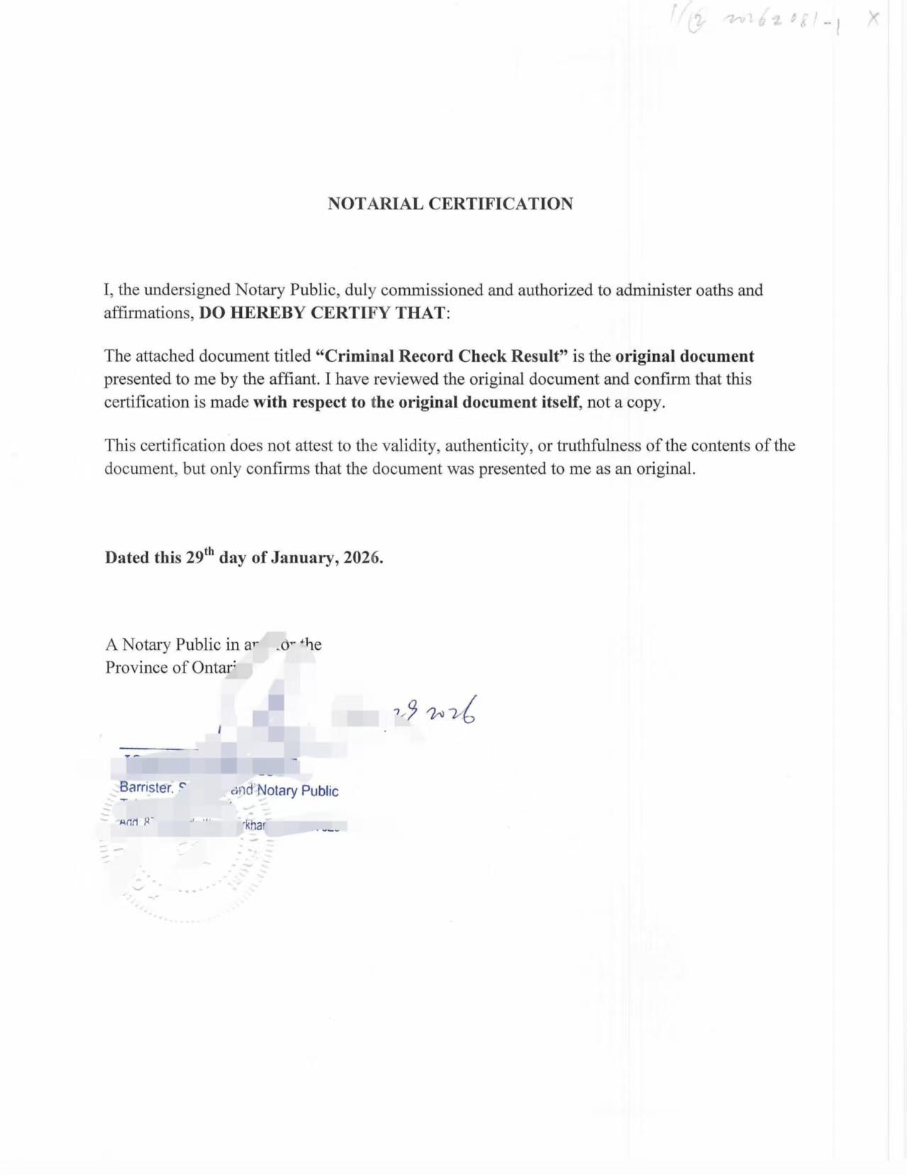 首先,确认加拿大无犯罪证明为皇家骑警正式出具的原始文件;
