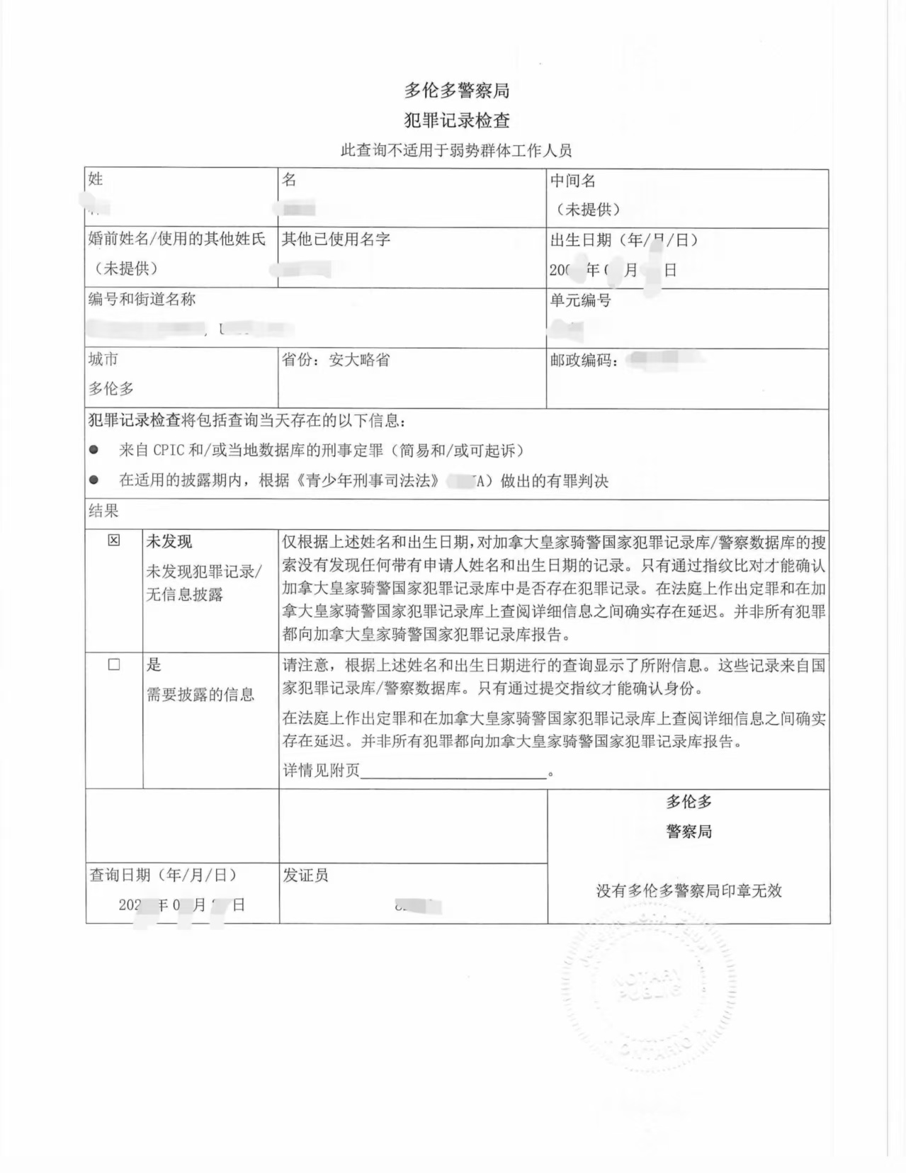 20262088 海牙认证样本 加拿大无犯罪 警察局 Application Results pdf