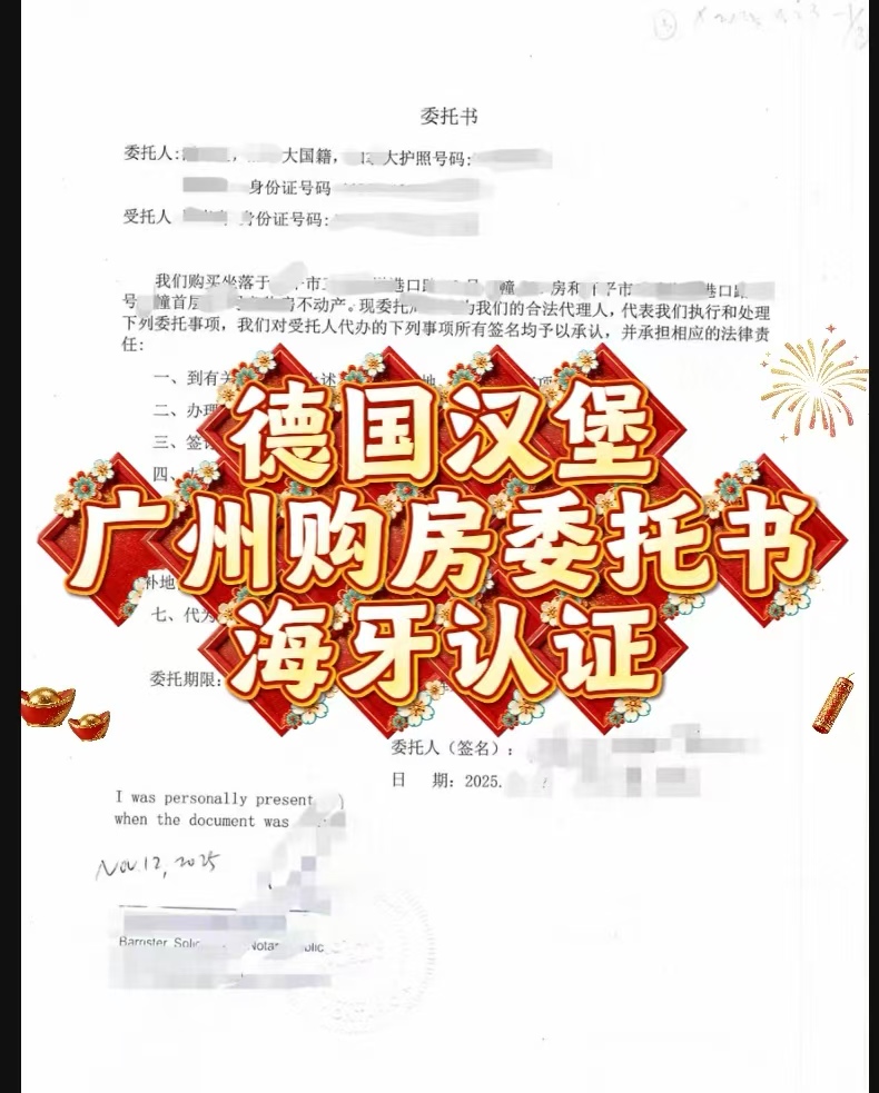 身在德国汉堡的安先生(化名),想在广州购置房产却无法回国办理?购房委托书 + 海牙认证是国内不动产登记中心、银行、公证处的必备文件。