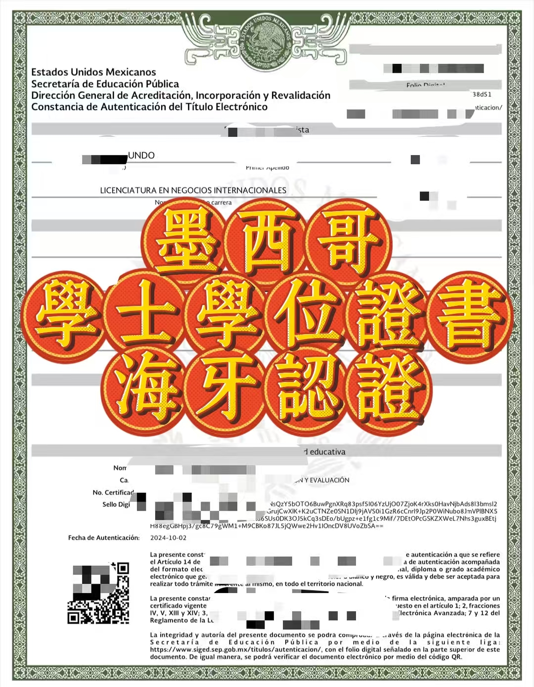 墨西哥为海牙公约成员国,其学士学位证书回国用于升学、就业、落户等场景,需办理海牙认证(Apostille),可免去传统领事认证的繁琐流程,实现跨国文件互通高效便捷。