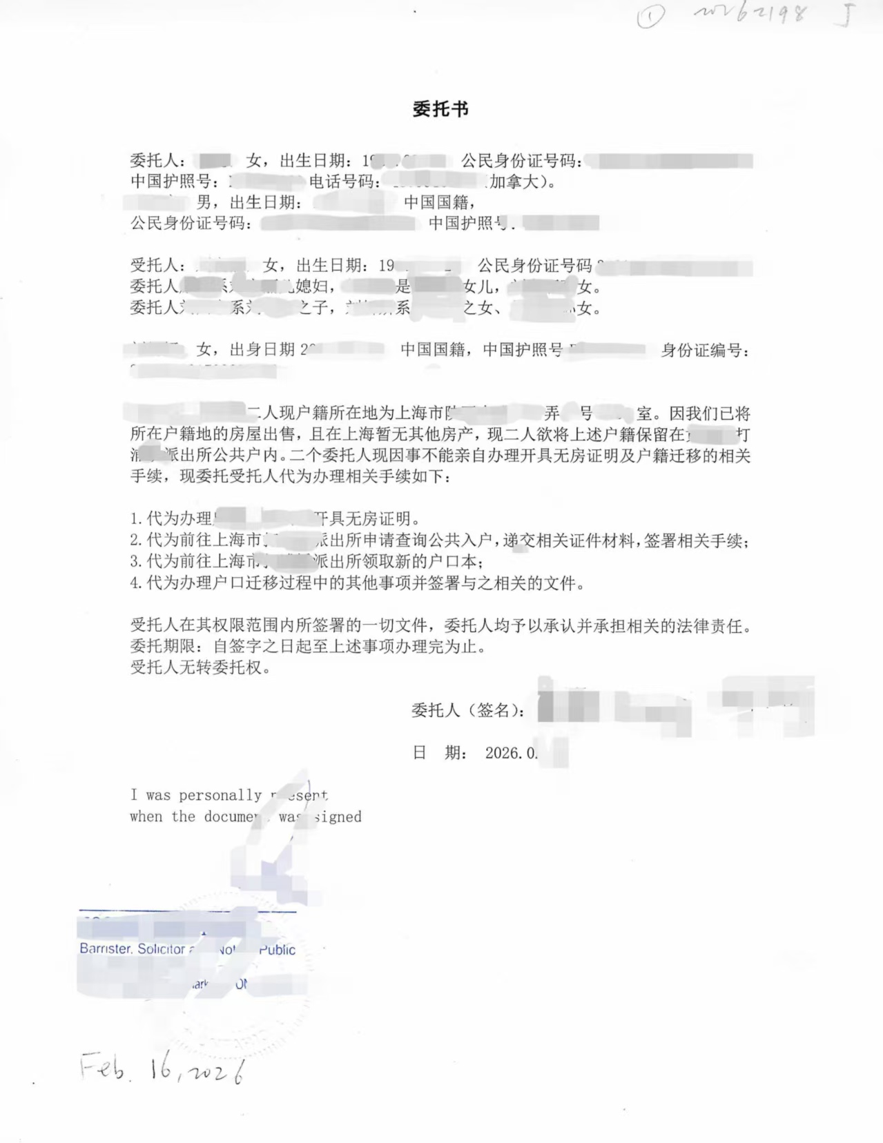 值得一提的是,这是老客户再次委托。此前已办理过相关房产出售手续,这次属于后续户籍与产权配套事务。回访时客户表示:“文件准备得很仔细,授权内容写得很清楚,国内办理时没有被要求补充材料。”并特别提到流程说明清晰,时间控制准确,“每一步都提前告知”。