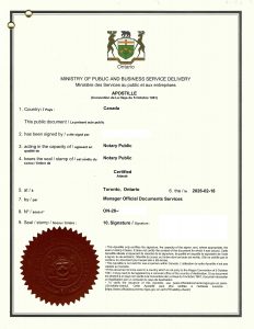 从海牙认证首页可以看到,该文件由安省官方签发 Apostille,签发地点为 Toronto, Ontario,日期为 2026年2月18日,格式为标准加拿大海牙认证版本,红色钢印清晰,签字齐备。整套文件结构规范,符合《海牙公约》成员国之间文件流转要求。