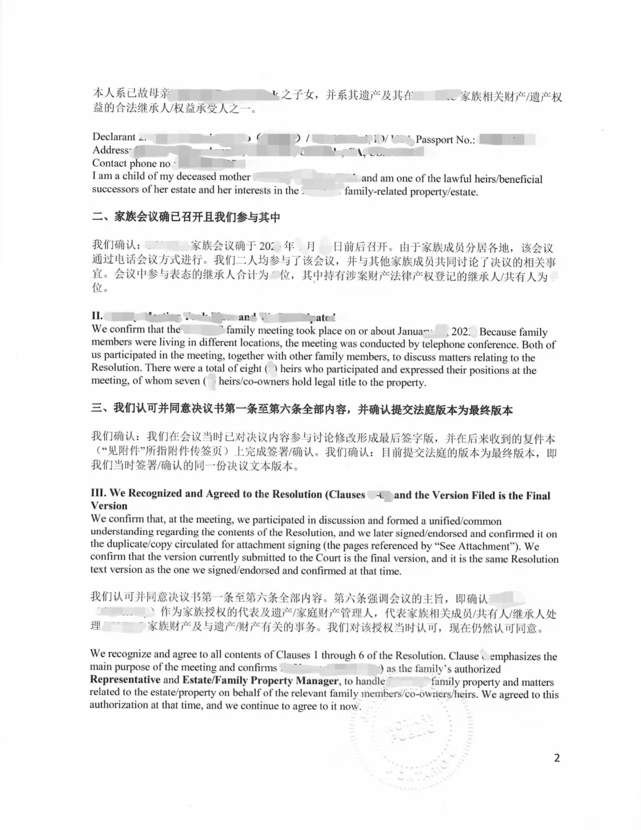 20262205 海牙认证 affidavit for family resolution 20260215 pdf