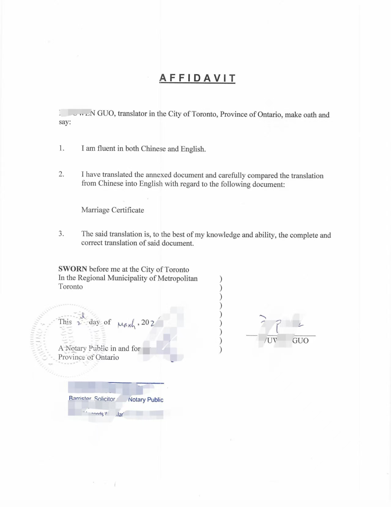 3)翻译宣誓书