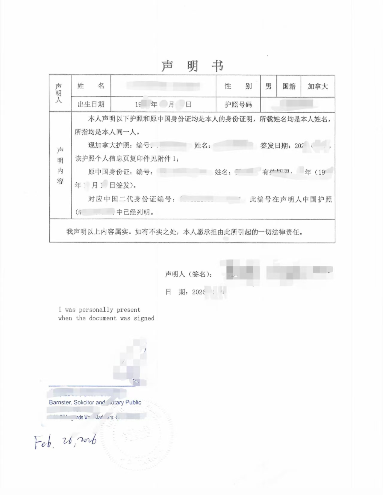 现在很多华人已经入籍外国国籍,但在国内办理房产、银行、继承、户籍注销等事务时,往往需要证明中国身份证与外国护照属于同一人。这种情况下,通过声明书公证并办理海牙认证,是目前最常见、也最被中国各地机构接受的方式之一。