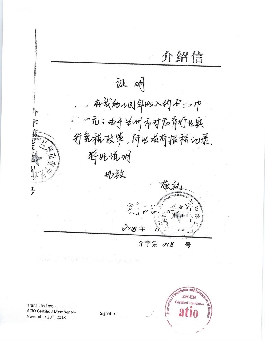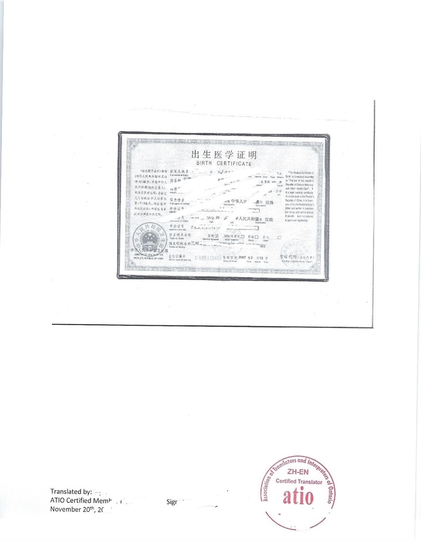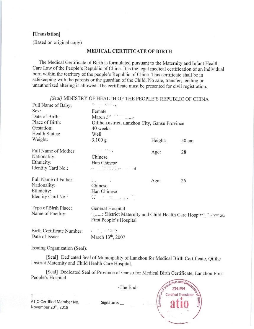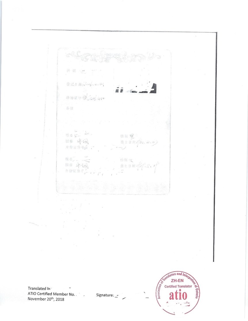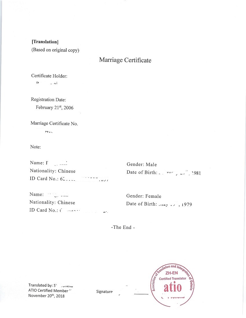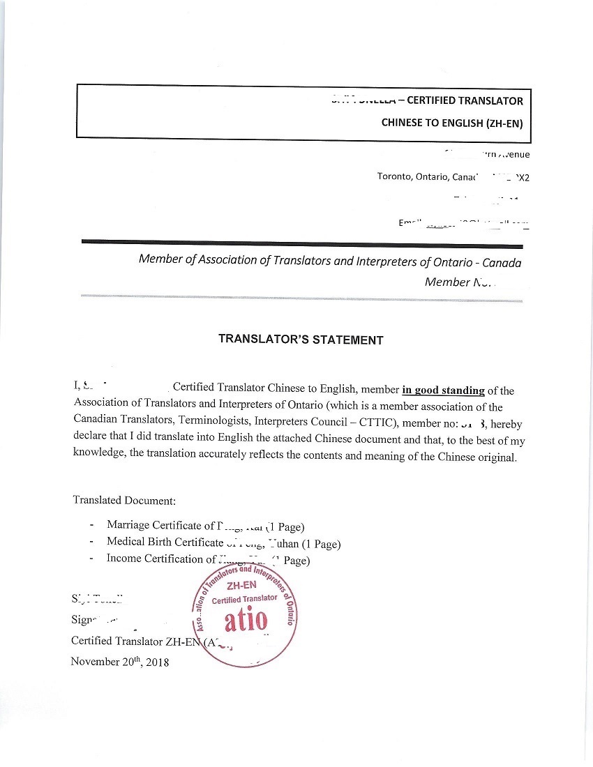 加拿大ATIO认证翻译样稿:结婚证 出生证 收入证明 2026/03/16 分类:ATIO认证翻译样稿 3 ATIO认证翻译样稿 结婚证 出生证 收入证明 PO: 20182894 结婚证与出生证 上一篇: 中国驾照ATIO认证翻译样品 用于申请加拿大驾照考试G2或G 下一篇: 中国法院调解书ATIO认证翻译样品 用于加拿大办理结婚手续