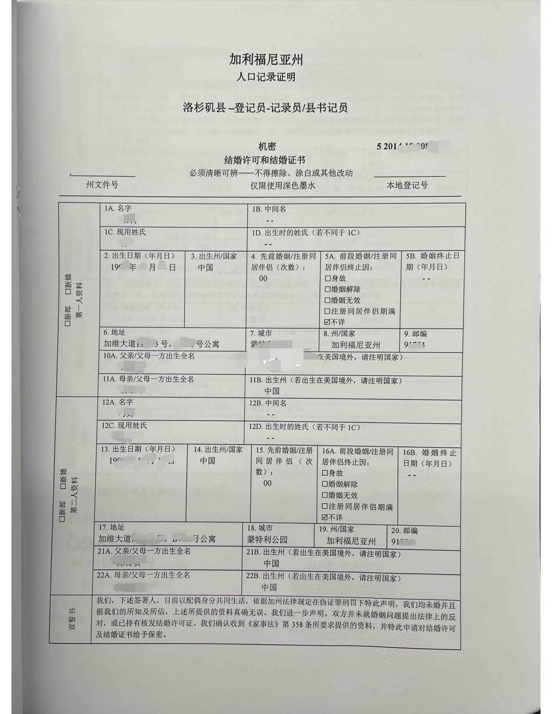 1·申请加州结婚证官方核证副本;