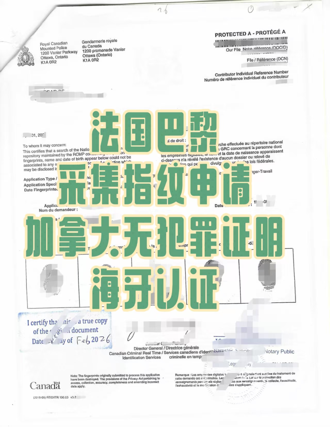 身居法国巴黎,心系枫叶国,移民申请就差这一步——加拿大无犯罪记录(指纹)及海牙认证,怎么办?人在海外,不要慌,交给我司全权代办!