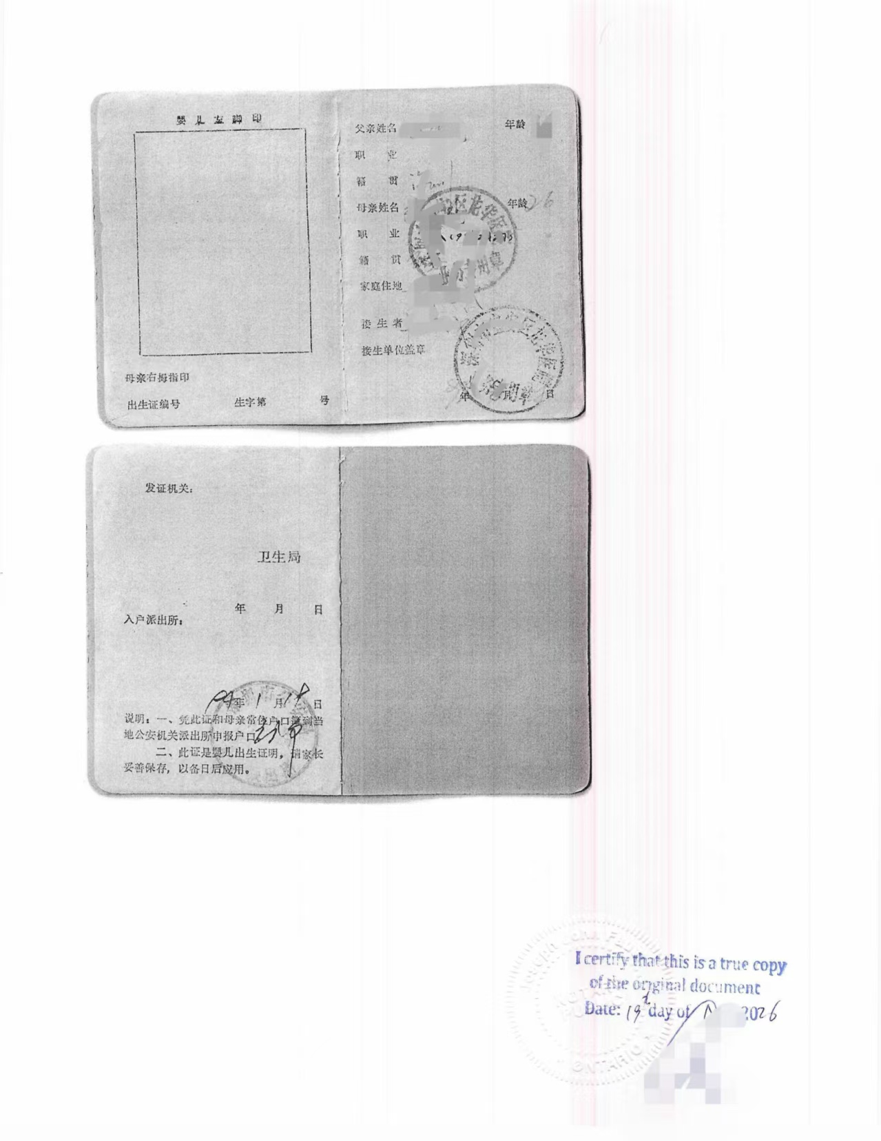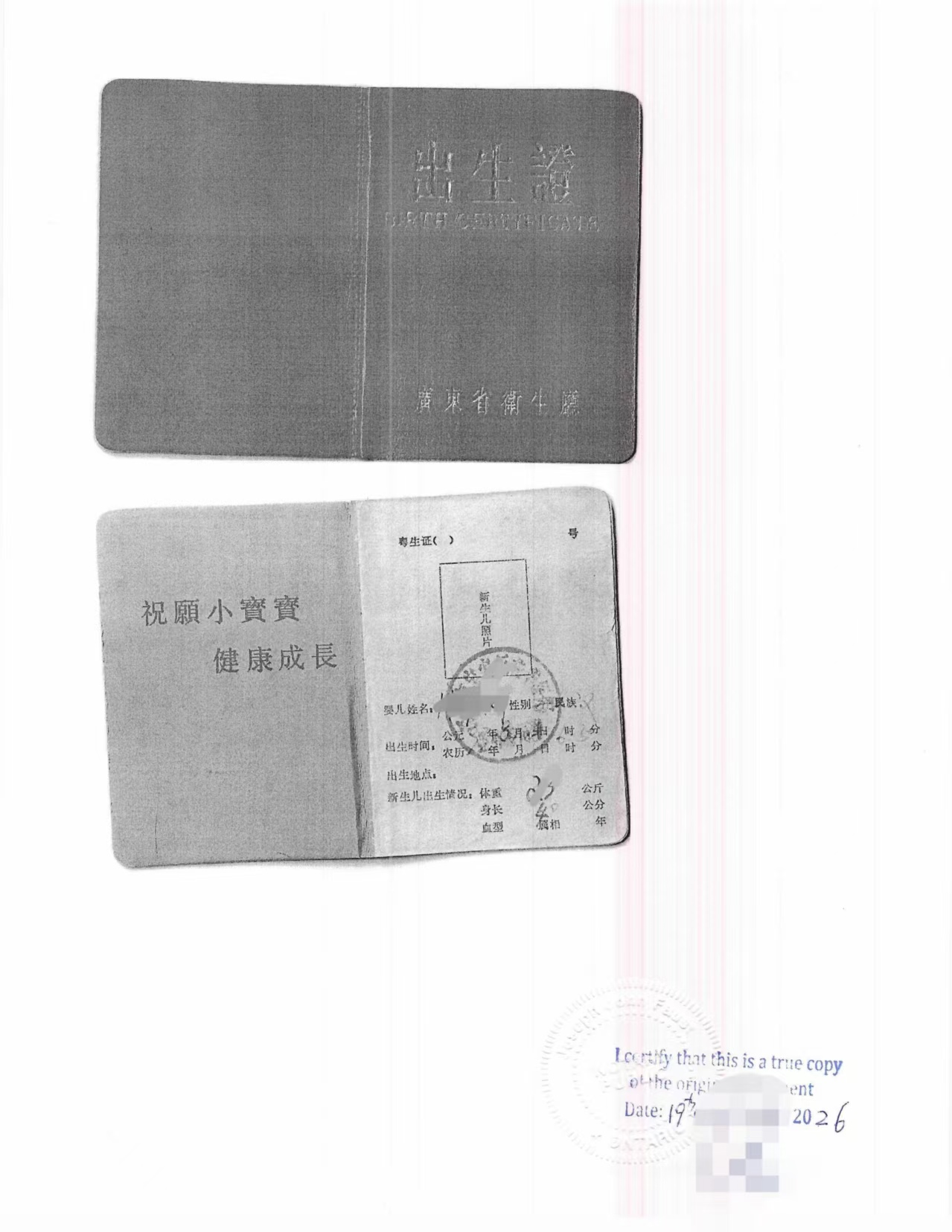 最近帮客户办理了一份比较典型、也比较“有年代感”的材料——中国广东省1999年前后的老式出生证,在加拿大用于申请永久居民(PR)材料提交。
