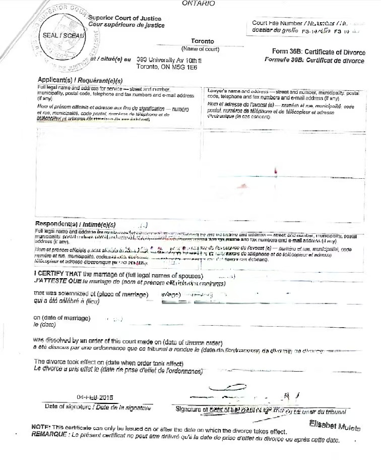 第一步,由安省持牌公证员对离婚文件进行公证;