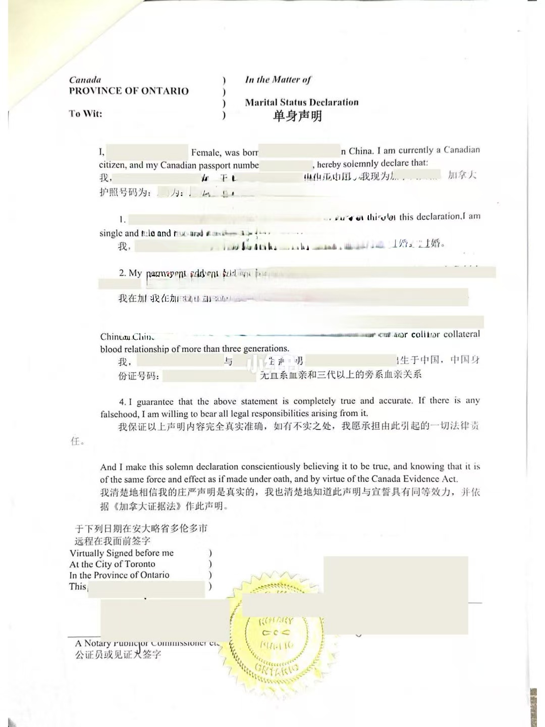 ·找加拿大持牌公证员(Notary Public),本人到场签字,