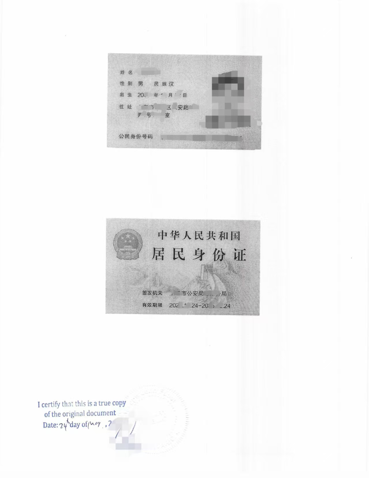 附身份证正反面复印件