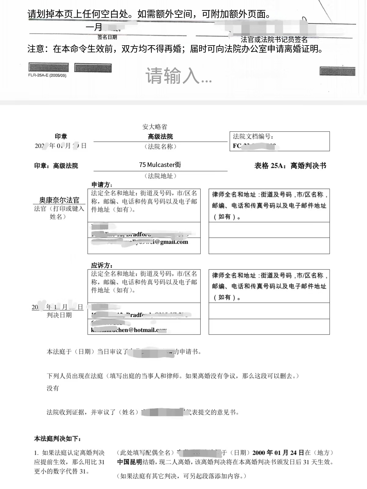这是刚刚办理完成的一单,属于典型的“加拿大离婚文件用于国内卖房”。