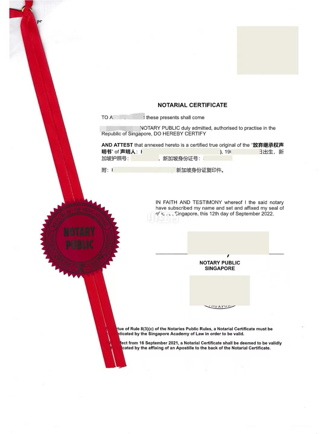 新加坡放弃继承声明海牙认证公证书办理流程