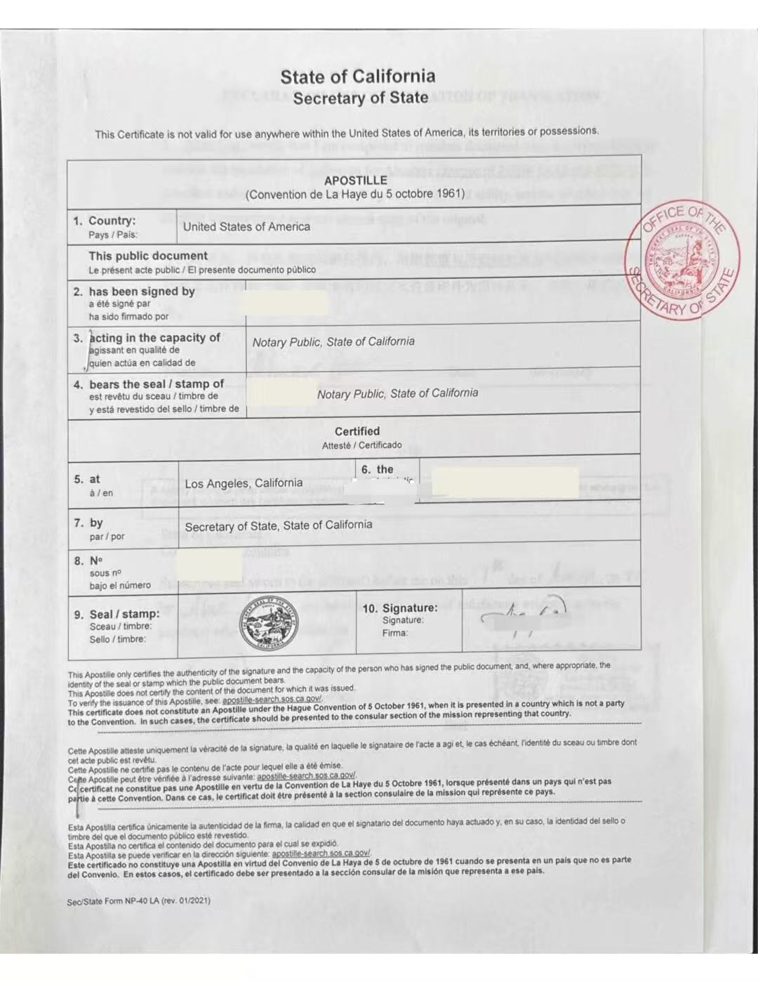 将公证好的文件提交至判决书签发所在州的州务卿办公室。州务卿审核无误后,会在文件背后附加上印有“Apostille”字样的认证页并加盖钢印。这标志着美国官方流程完结。通常办理时效为1-3个工作日,加急可更快。
