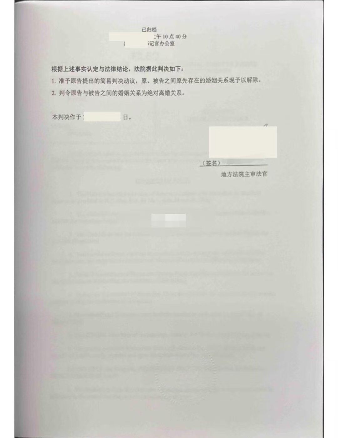 美国出具的判决书为英文,在国内使用前,必须由具备资质的正规翻译机构翻译成中文,并加盖翻译章。