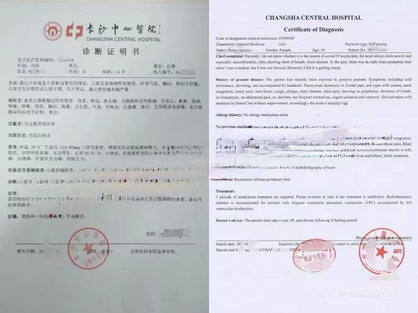 二·诊断书翻译: