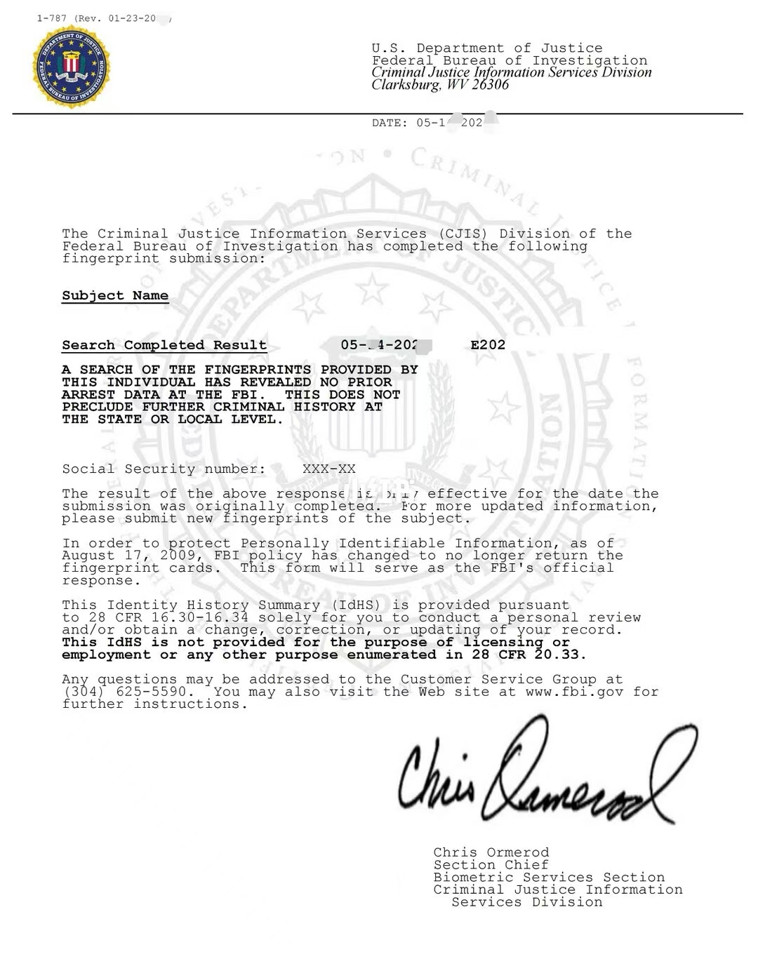 填写完整的 FBI I-783 申请表、
