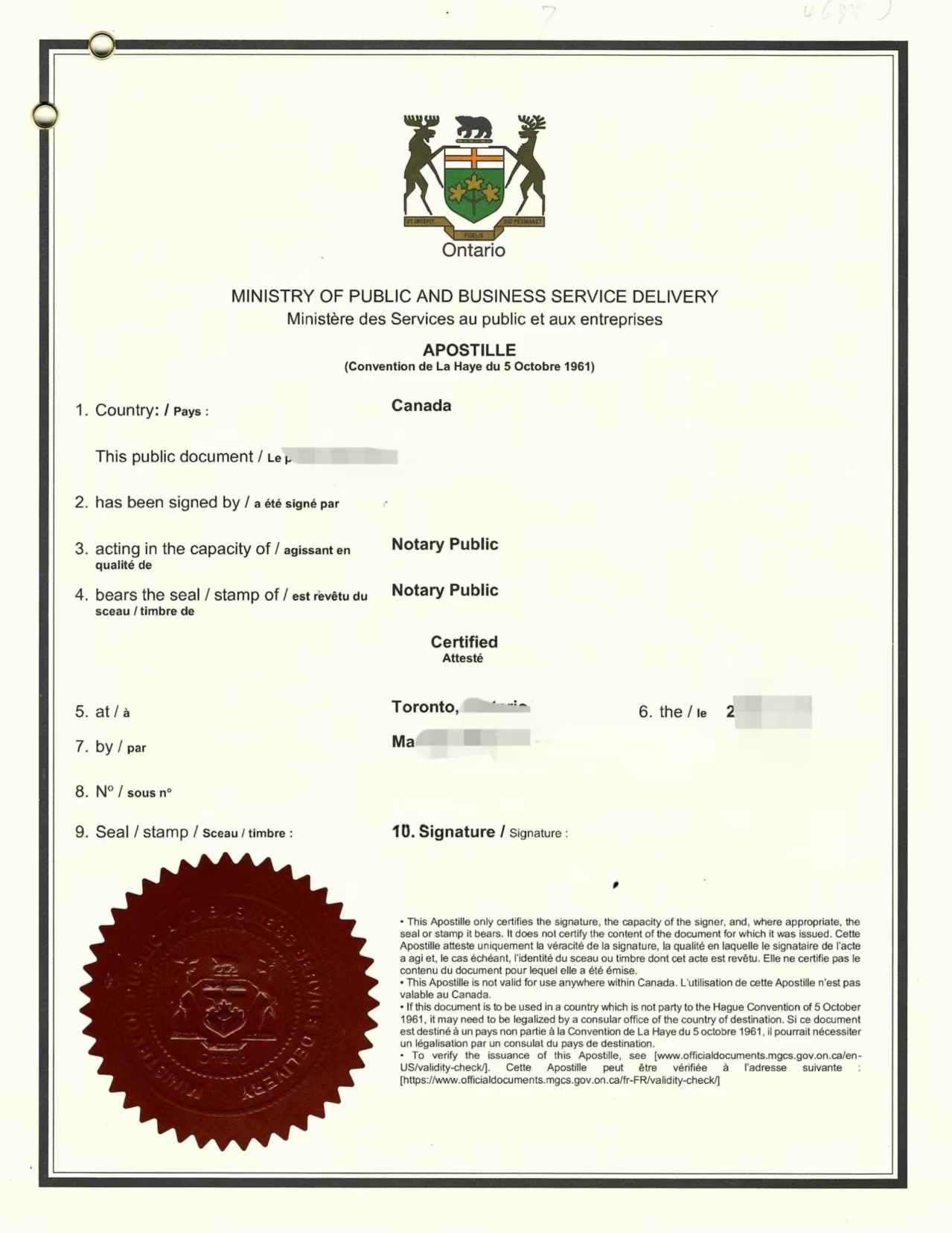 朱先生因工作外派到加拿大安省、事务繁忙、本人无法亲自回国办理中国工商银行相关个人业务,特委托亲戚吴女士代办,需提前办理个人授权委托书海牙认证(附加证明书),此为跨境委托的法定必备程序。